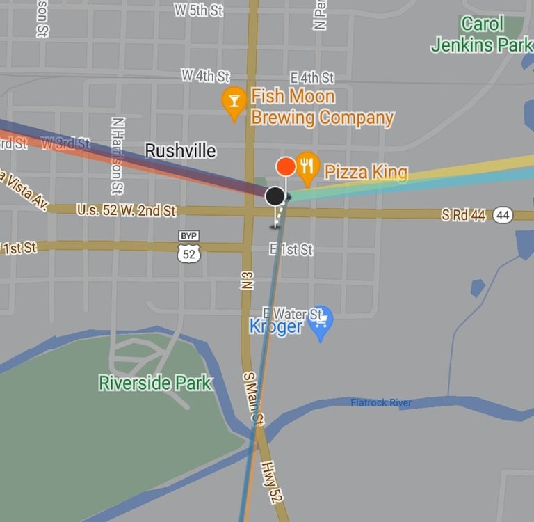 The times show, from left to right, first contact, second contact, totality, third contact, and end of the eclipse. I knew from these times (3 PM) that the eclipse was going to be really high up in the sky. From here I tried to determine, what kind of shot can I get? The most epic shot in my mind would be getting an alignment with a tall building or peak, and getting a HUGE eclipse/sun. This is done by using the compression effect: get really far away from your subject/building to make it look small, then zoom in with a telephoto to make the sun appear large. But is it possible?